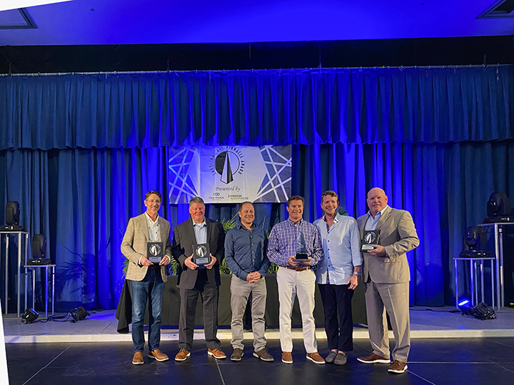 Choate Construction along with SteelFab, Pleasant Places, and Glasscorp accept the CAGC Pinnacle Award at the 2023 Annual Conference in Aruba.