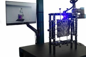 Digitize Designs designed and exclusively offers the RM-300, built on the Vention platform, using SCANTECH SIMSCAN for 3D scanning/sensing, Universal Robot’s URE3 for robotics, a custom-built PC by Top Flight Computers, a Dell Touchscreen Monitor for operation, Nexos’ software for robotics and 3D scanning, and Polyworks Inspector software for automated inspections.